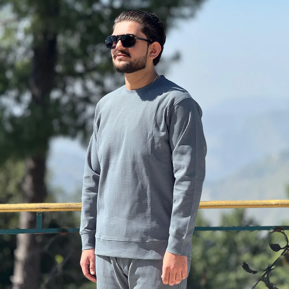 Grey Blue Men Sweatsuits